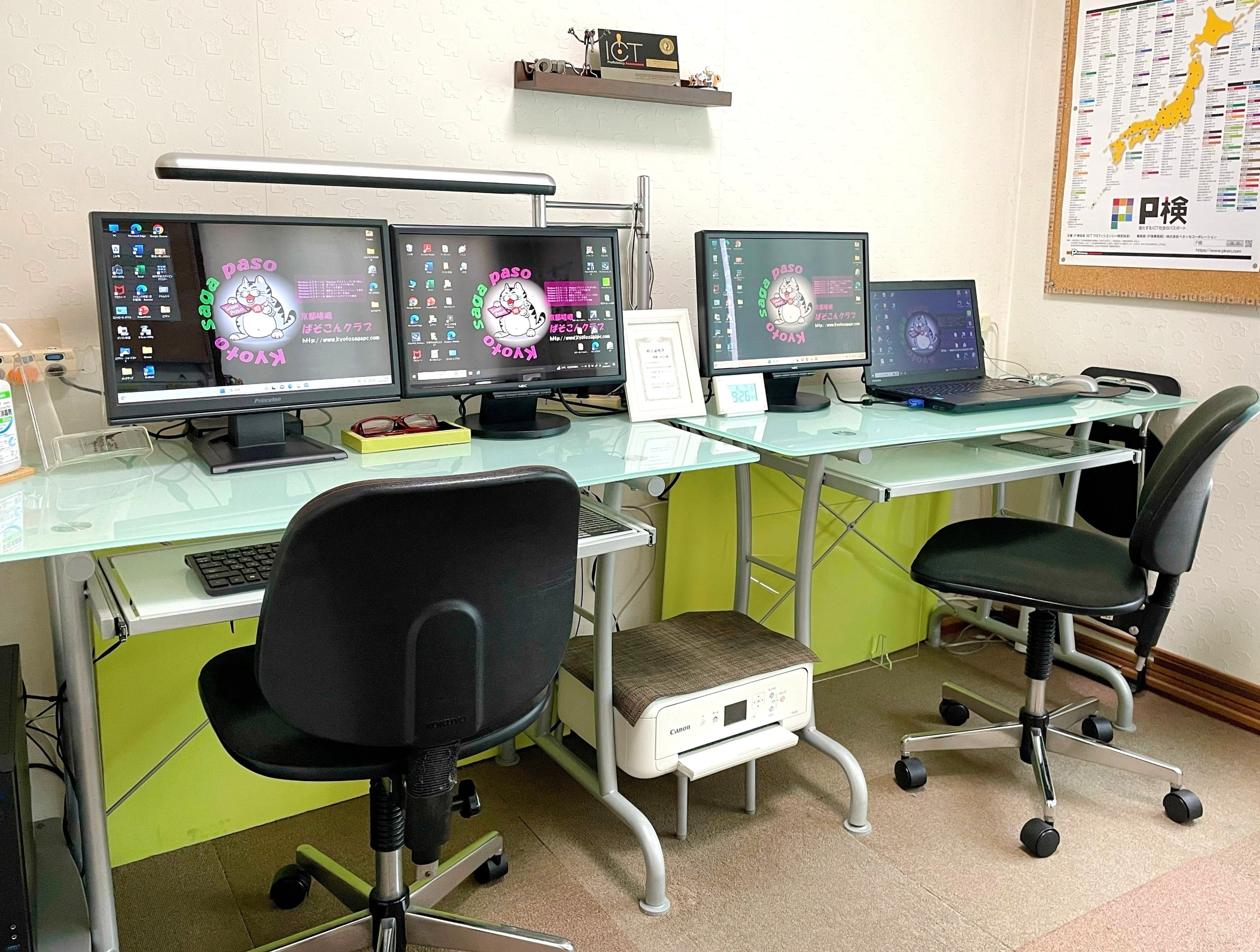 全室でディスクトップ型パソコン5台・ノートパソコン2台・プリンター2台